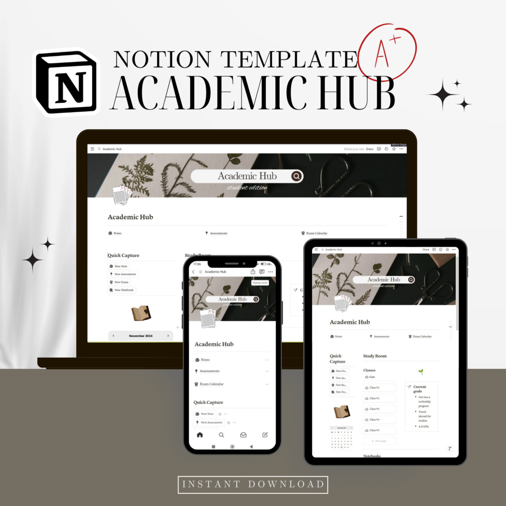 The Academic Hub template offers a comprehensive set of tools & real-time insights for students. It's everything you need in one intuitive, user-friendly package. Stay organized, focused & motivated. You'll be able to manage your coursework & track your progress. This planner is your ultimate academic support (and it's pretty❣️).